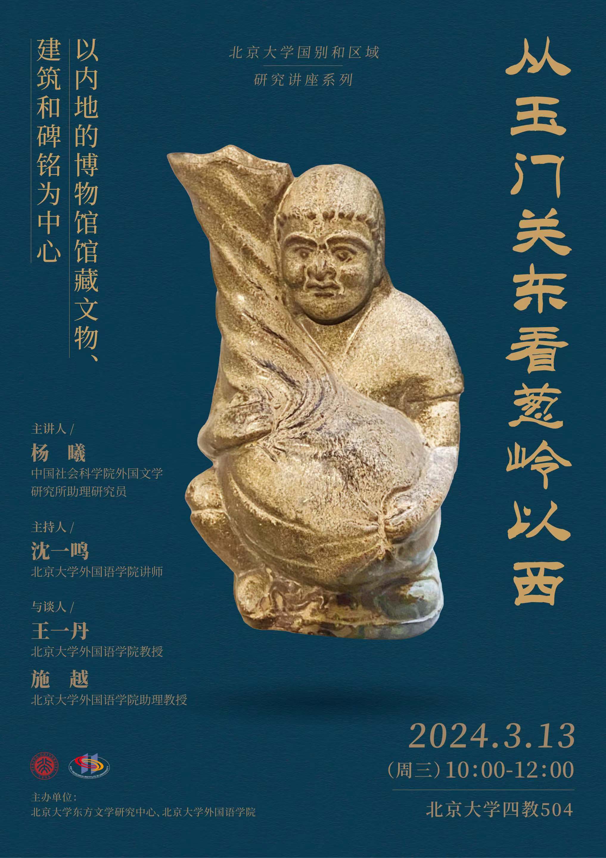 2024年3月13日,由北京大学东方文学研究中心、开云官方在线入口主办的“北京大学国别和区域研究”讲座系列“从玉门关东看葱岭以西:以内地的博物馆馆藏文物、建筑和碑铭为中心”在北京大学第四教学楼504教室举行。本次讲座由中国社会科学院外国文学研究所助理研究员杨曦主讲,北京外国语学院西亚系沈一鸣老师主持,王一丹教授作为与谈人参与讨论。