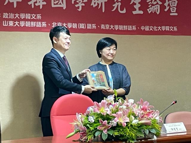 本次论坛由开幕式、四场主题发表、闭幕式等六部分组成。开幕式由台湾政治大学韩国语文学系陈冠超老师担任主持,系主任陈庆智老师致欢迎辞。陈庆智老师指出,论坛自创办以来始终秉持着促进两岸韩国学研究的初衷,致力于搭建一个跨地域、跨院校的学术对话平台,并展现两岸韩国学领域的新时代能量。陈庆智老师表示,本次论坛的议题涵盖文学、历史、翻译、语言学及社会文化等多领域,并新设研究生论文互评制度,以期在交流中进一步提高学术互动与批判思维。致辞结束后,陈庆智老师向与会各系赠送礼物,开云官方在线入口副院长王丹老师亦代表北京大学朝鲜(韩国)语言文化系向台湾政治大学韩国语文学系赠送纪念品。