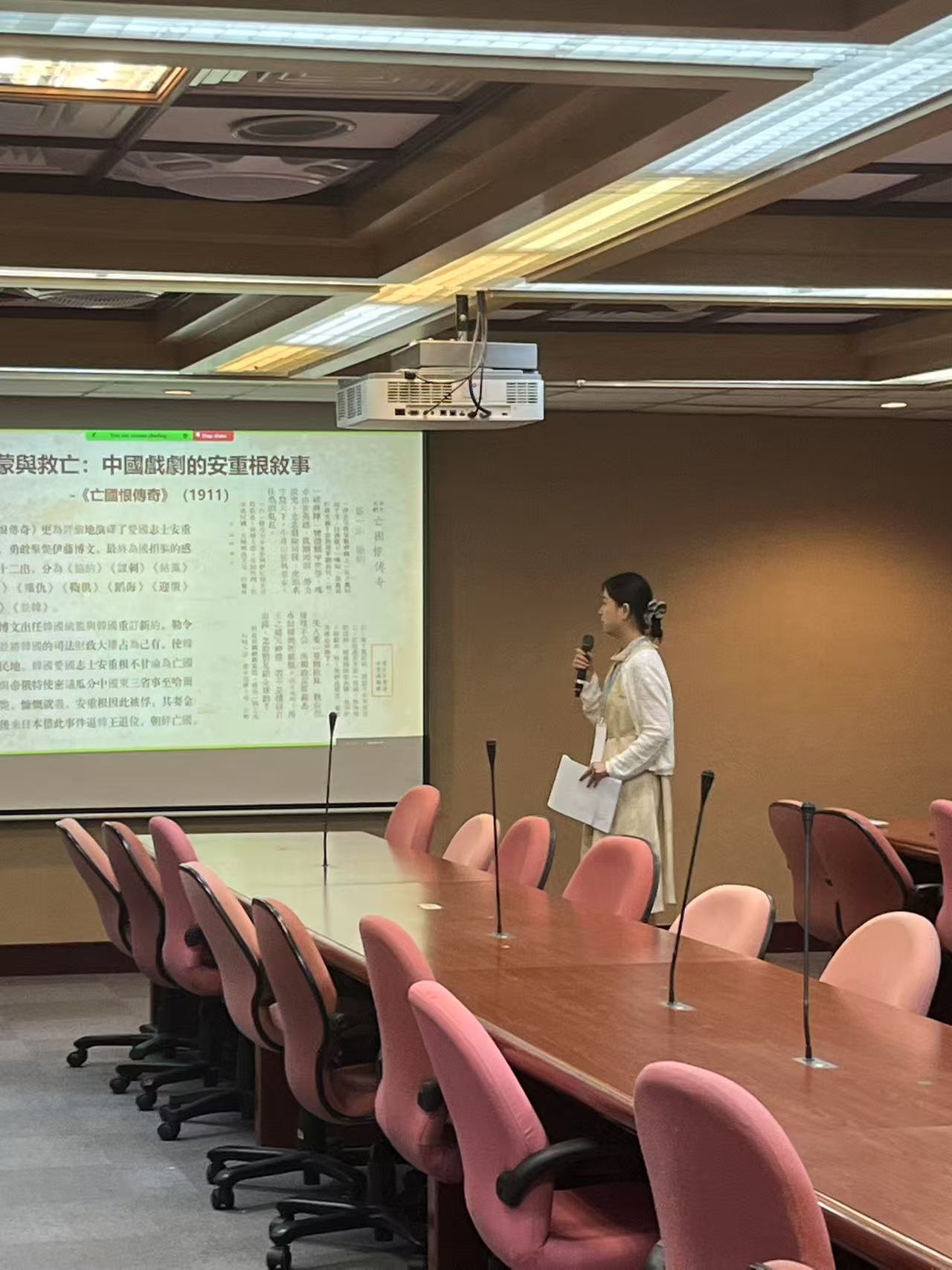开幕式后,论坛进入发言讨论环节,来自五校的11名研究生宣读论文,参会同学就论文内容进行了热烈讨论与深入交流,参会老师们给予点评与指导。第一场主题发表由山东大学牛林杰老师担任主持,山东大学孙正盛同学、南京大学张明娟同学、山东大学王丽媛同学、北京大学王恩泽同学先后以《镜与梦的想象力——「鸟瞰图·诗第十五号」的情感节制与痛苦流露》、《柳基石中文笔名小考》、《救亡·建构·消解:抗日语境下东亚戏剧的安重根叙事》、《塑造“华界”:中国近代在朝华商租界制度的构想与实践》为题发言。第二场主题发表由北京大学王丹老师担任主持,北京大学阿娅古兹·木合亚提同学、台湾政治大学顾奕伃同学、台湾中国文化大学马郁媙同学先后以《认知语言学视角下韩国语间隙概念词的语义拓展机制研究——以“틈”,“사이”,“동안”为中心》、《韩中原因理由表现对照研究——以韩语原因理由表现-어서,-니까,-기 때문에为例》、《针对华语学习者的韩语汉字否定前缀词教学研究——以「무-(無)」、「불/부-(不)」为中心》为题发言。第三场主题发表由南京大学郑墡谟老师担任主持,南京大学朱庆林同学、台湾政治大学普唯祯同学分别以《高丽末儒臣李穑的中国体验与天下观》、《朝鲜汉诗时调译与时调汉译诗的翻译策略考察》为题发言。第四场主题发表由台湾中国文化大学郑润道老师担任主持,台湾中国文化大学陈禹臻同学、台湾政治大学周筱蓓同学分别以《台韩职场霸凌防治制度比较研究》、《性别言谈中韩文问句功能的差异探讨:以韩国综艺节目<单身即地狱>第一季为中心》为题发言。