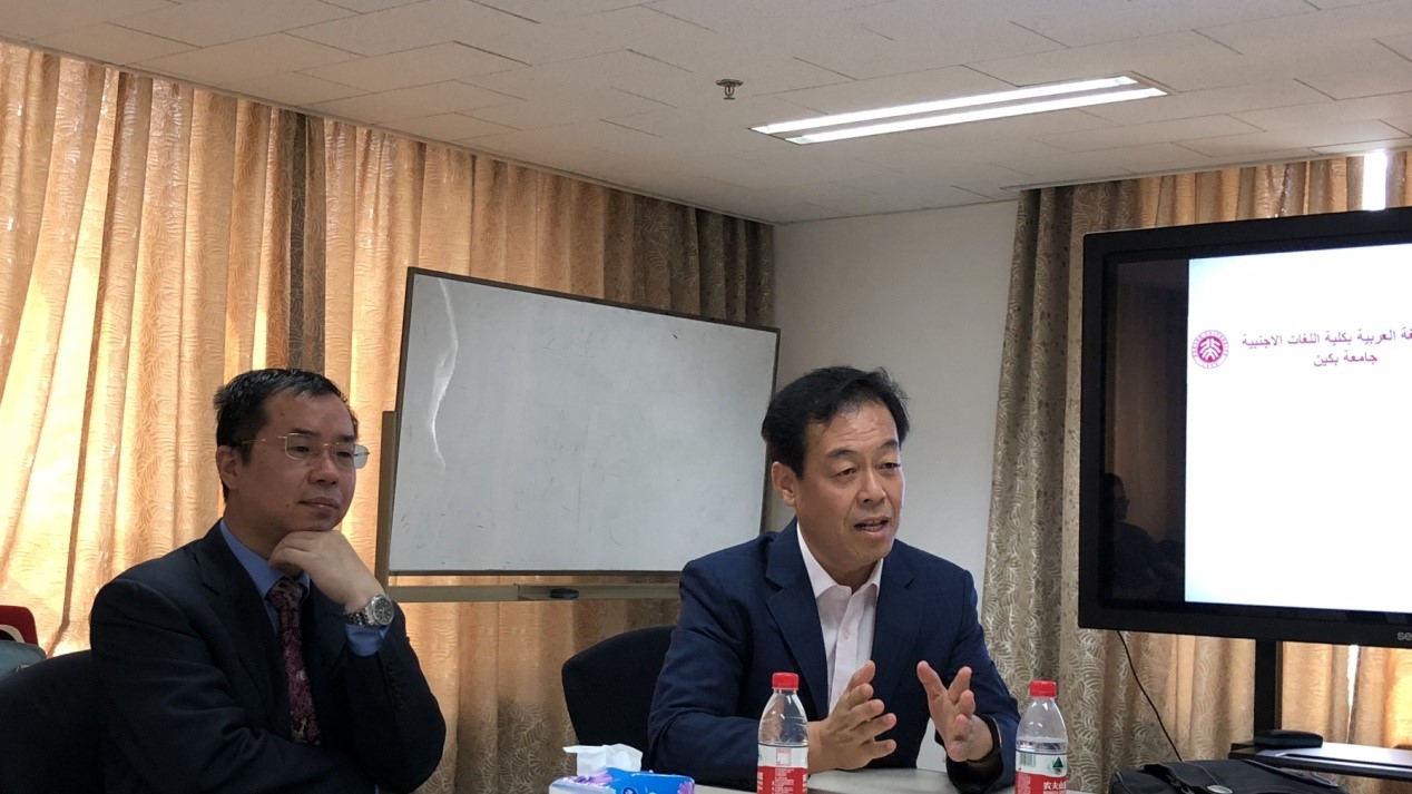 付志明教授随后向代表团介绍了外国语学院的基本概况,重点说明了北大外语学科未来的发展思路与规划。当代表团成员得知北大教授包括库尔德语在内的几十种专业语言和研究语言时,感到非常惊讶。付志明教授还对未来双方高校开展合作交流做了展望。