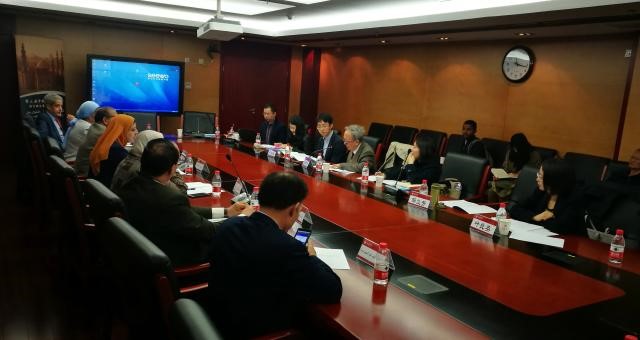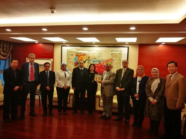 开云官方在线入口院长宁琦教授(左六)会见参会的开罗大学学者代表团