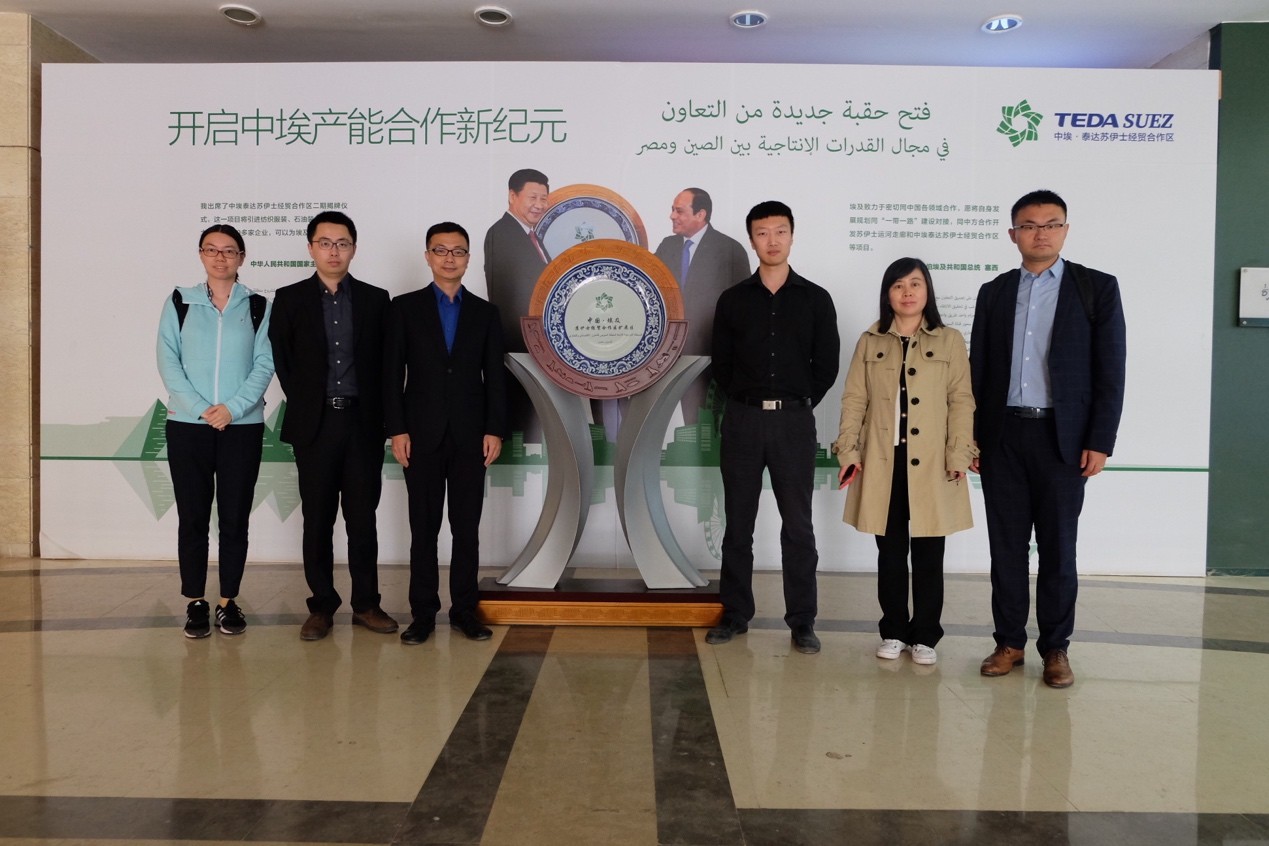 团队在埃及的最后一站参访机构为中埃•泰达苏伊士经贸合作区。泰达公司招商部高级经理孟繁吉首先带领团队师生参观了经贸合作区展厅与沙盘,就合作区从1998年确立成立意向到目前第二期成熟运作的发展史做了详细的介绍。随后,孟繁吉经理与团队进行了座谈,双方就“一带一路”背景下中资企业在海外业务拓展面临的机遇与挑战展开探讨。团队师生从各自研究的领域和视角出发就该主题表达了自己的见解和疑问,孟繁吉经理结合自身在经济合作区及海外其他国家长期开展业务的经验,从政府支持力度、盈利模式、人才培养、企业文化等角度对团队师生的提问做了详细的解答。