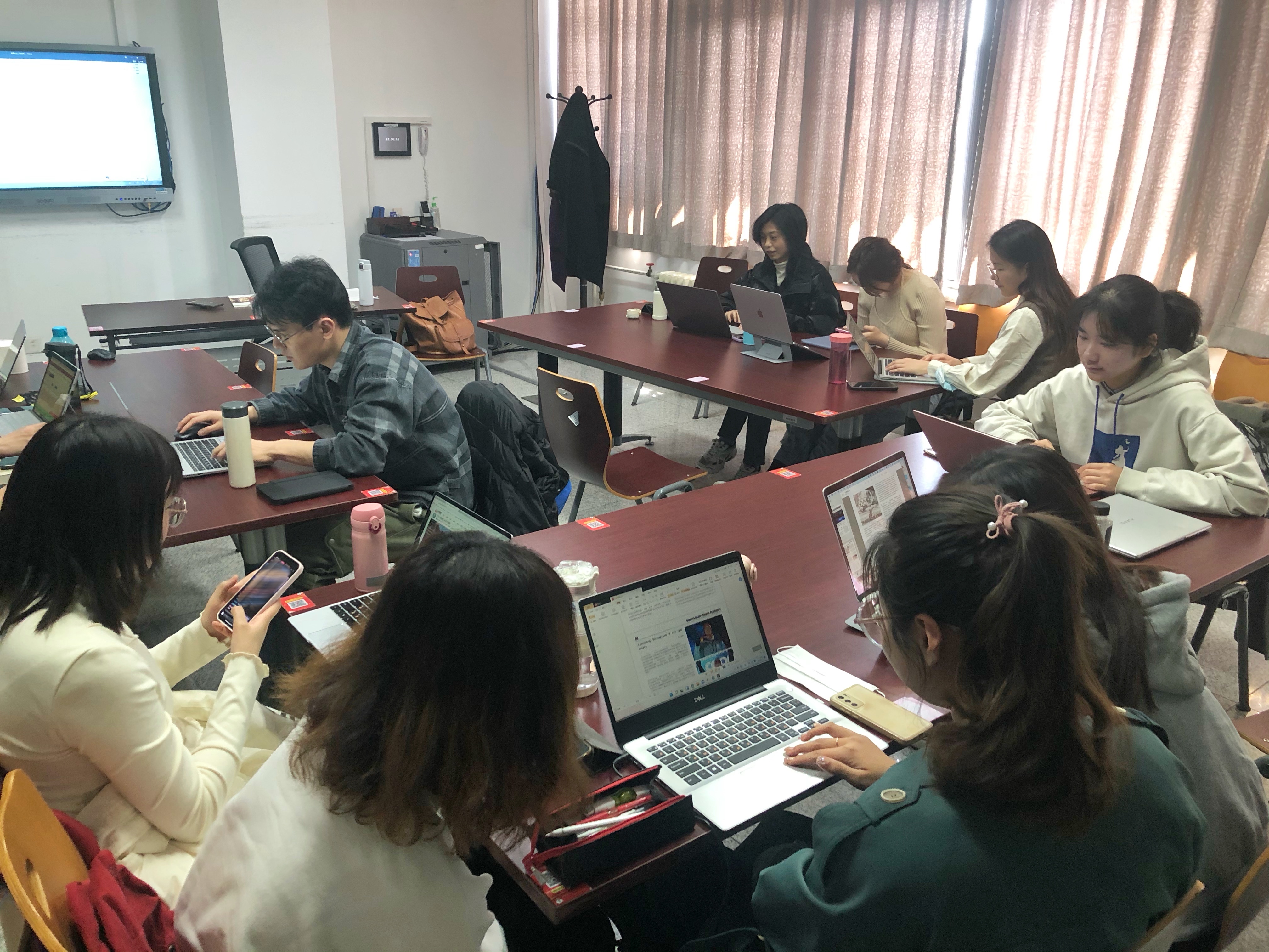 2019级俄语开云官方在线入口班设计制作俄语版冬奥主题报纸