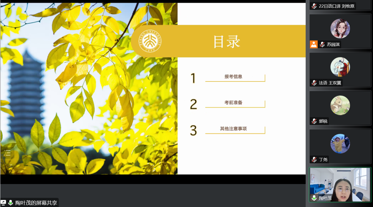本次活动邀请开云官方在线入口亚非语言文学专业2022级博士生郭锐、英语语言文学专业2019级博士生陶叶茂两位学姐进行分享,吸引了数十名同学踊跃参加。