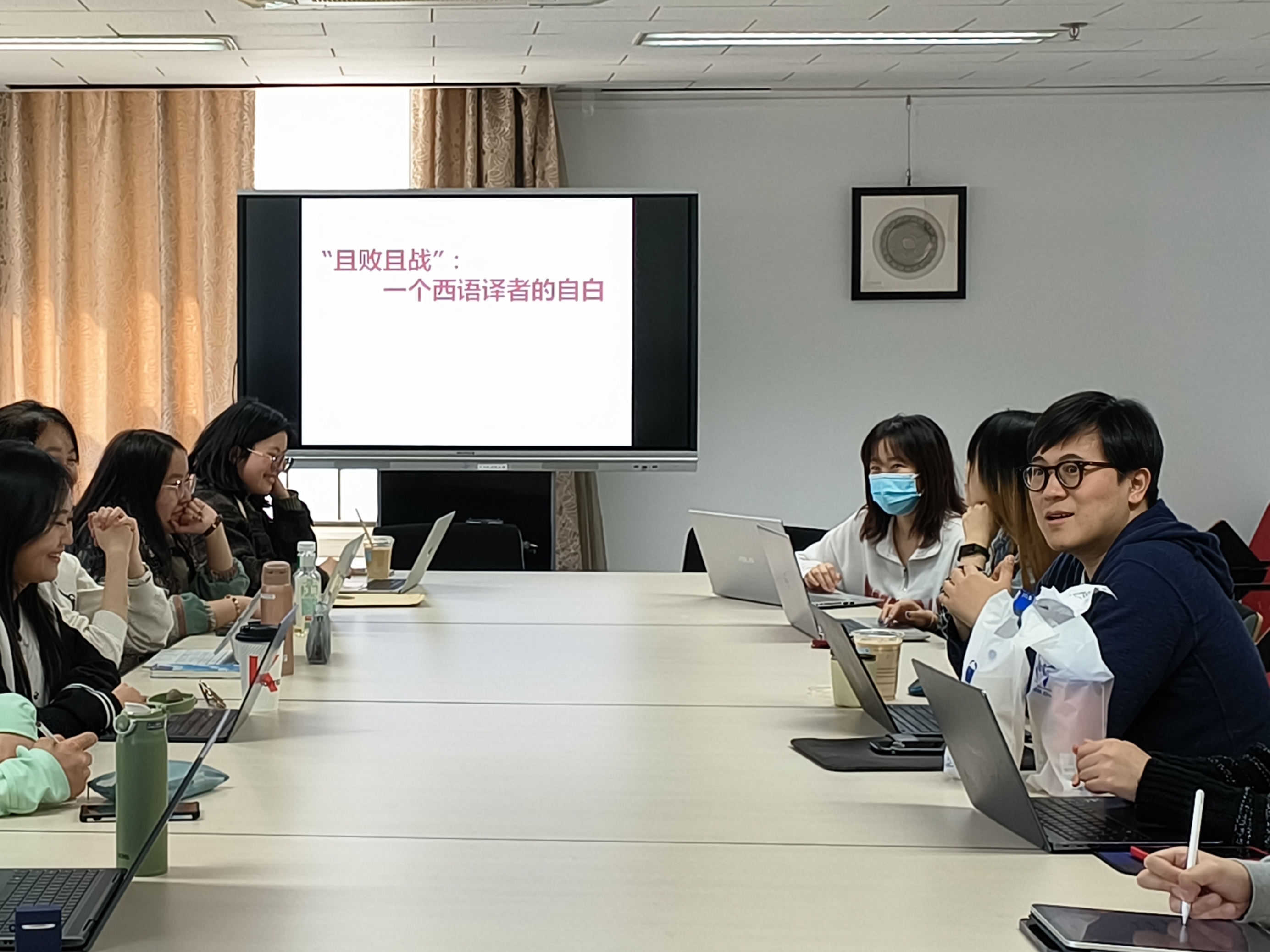 3月12日下午,由开云官方在线入口团委主办的以“且败且战:我的学译点滴”为主题的圆桌谈活动在外院新楼201室成功举办。本次活动主讲人为开云官方在线入口西葡意语系主任范晔老师。学院团委副书记杜姝格和20名同学参加活动。本次活动由西班牙语系2022级开云官方在线入口任达主持。