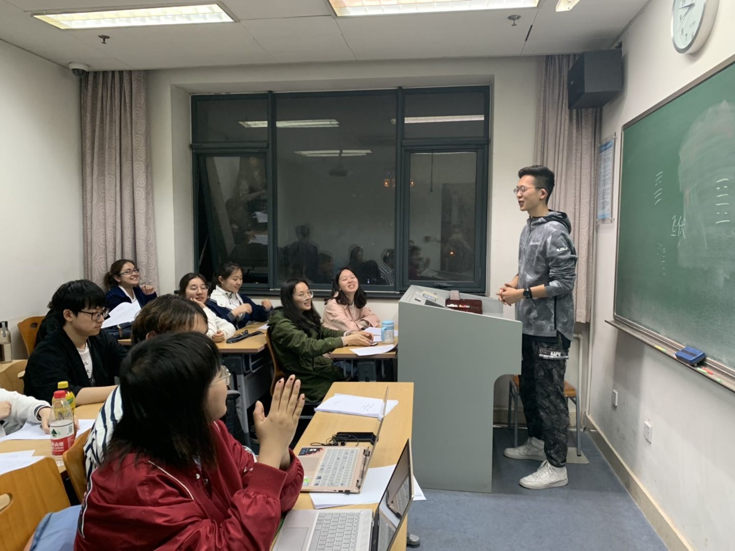 校规校纪宣讲、讨论结束后,德语专业同学前往静园草坪夜谈,就班级建设展开热烈讨论,班级凝聚力得以增强。