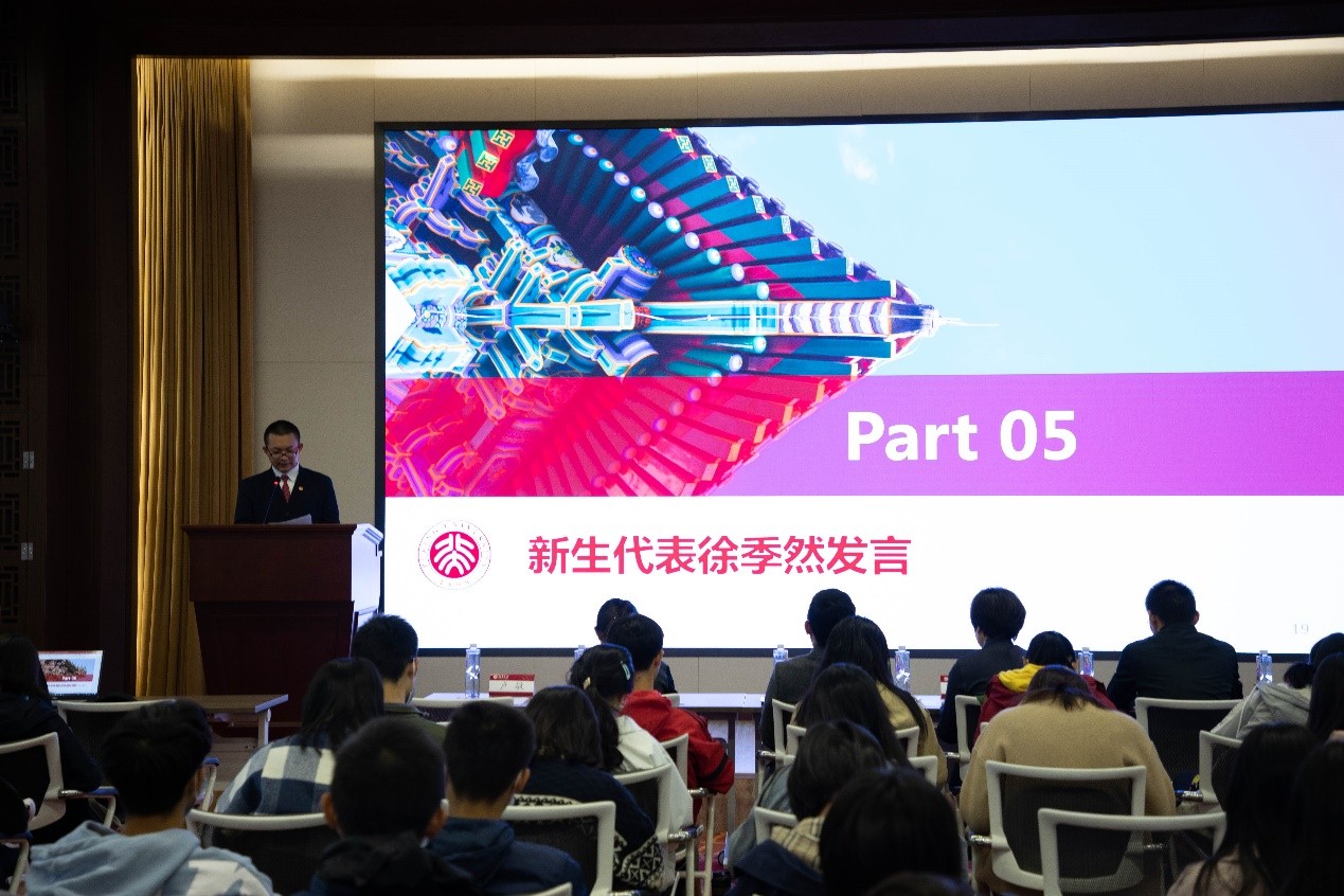 2020级开云官方在线入口徐季然代表新学年团校学员发言。他表示,2020年初的疫情让青年人看到了中国特色社会主义制度的强大优势,更让大家明确了时代赋予青年的重大使命。他希望能与各位同窗一道,在外院团校深入学习先进理论、把握正确方向、提升自身能力、躬行时代担当。徐季然表示,作为外院学生骨干的后备力量,在接下来的学习生活中他也将发挥“骨干”作用,积极为同学服务,不忘初心,严于律己,力求知行合一。