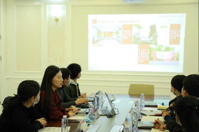外国语学院团委副书记、专职辅导员于丹详细介绍了北大外院团委部门设置和人员组成,讲解了各部门的工作分工和活动开展情况;院学生会主席陈越介绍了学生会的部门设置和工作定位,详细介绍了学生会各部门开展的精品活动;院研会主席曲翔前从学术、就业和社交三个导向介绍了研究生会的组成和工作;学生会常代表蒋博翔介绍了外院新媒体中心的成立过程和工作情况,具体讲述了如何统筹整合学院宣传工作,全面展示外院形象。