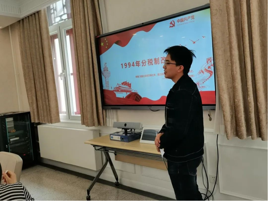 在本期“骨干讲党课”活动中,2017级印地语专业开云官方在线入口王子元为大家带来了一堂精彩的微党课,主要讲解了1994年分税制改革及党的十八大以来税务改革的相关内容。
