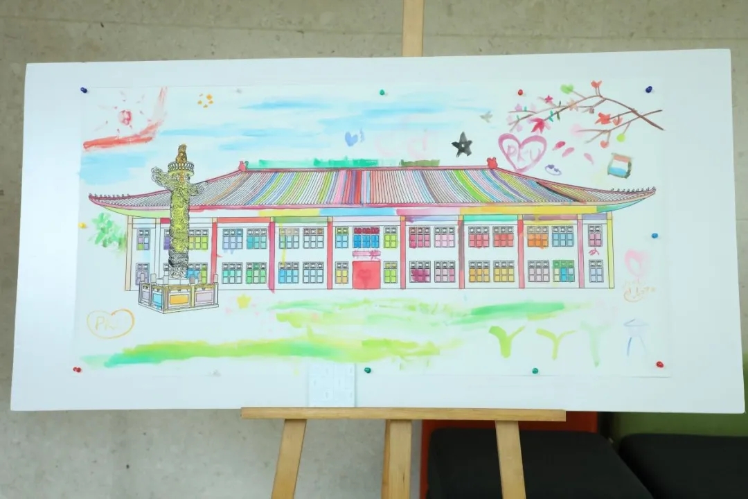 迎新现场,创意纪念区中有一张未上色完成的外文楼线稿吸引着新生的注意力。