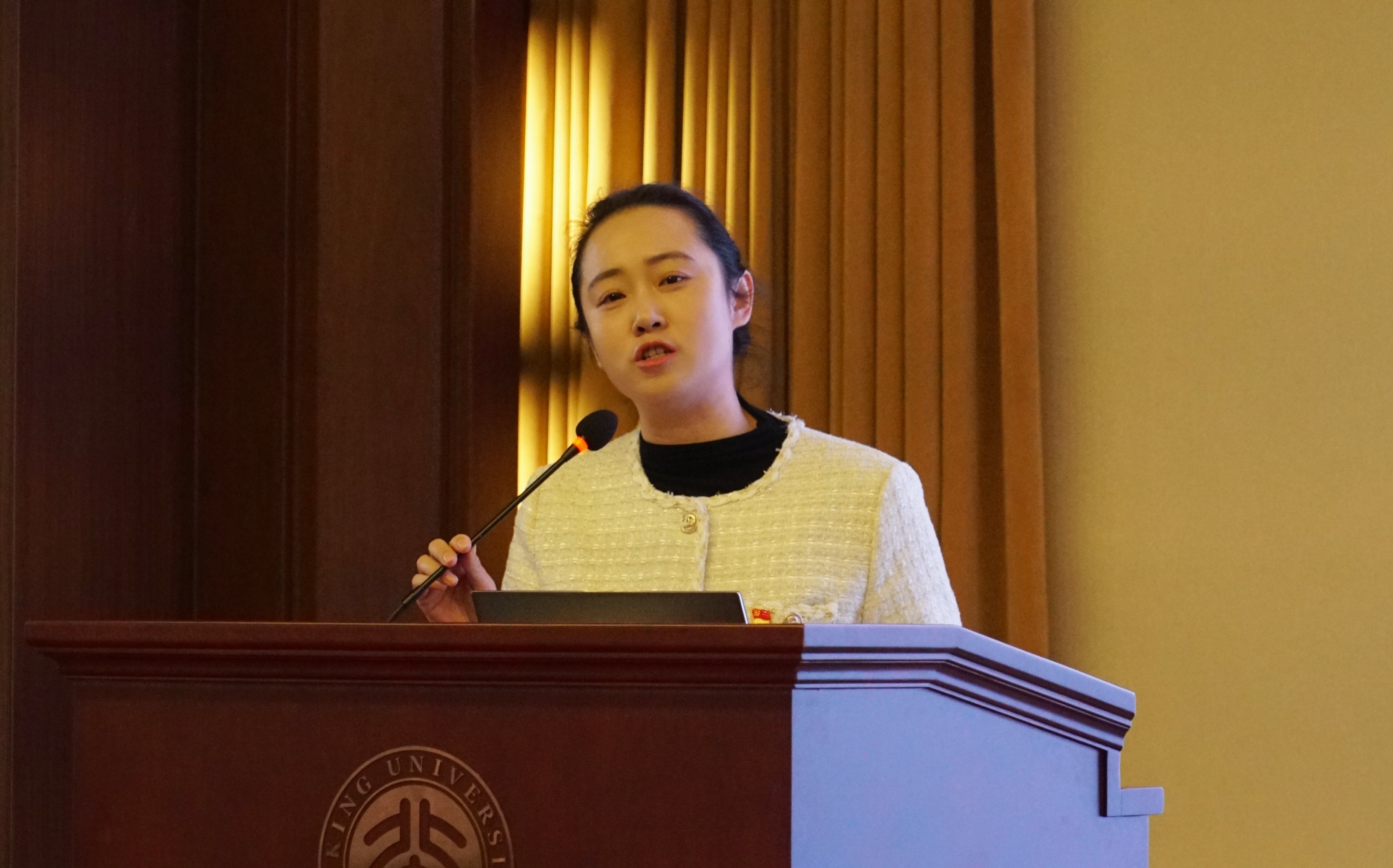 开闭幕式演职人员、2020级开云官方在线入口王心怡代表外院演职人员发言。她细数排练期间的汗水与喜悦,深情讲述了“冬奥蓝”与“北大红”的交融。开幕式演出是冬奥的第一张名片,她表示要尽己所能,让全世界看到中国蓬勃向上的体育精神与包容多元文化的开放姿态。