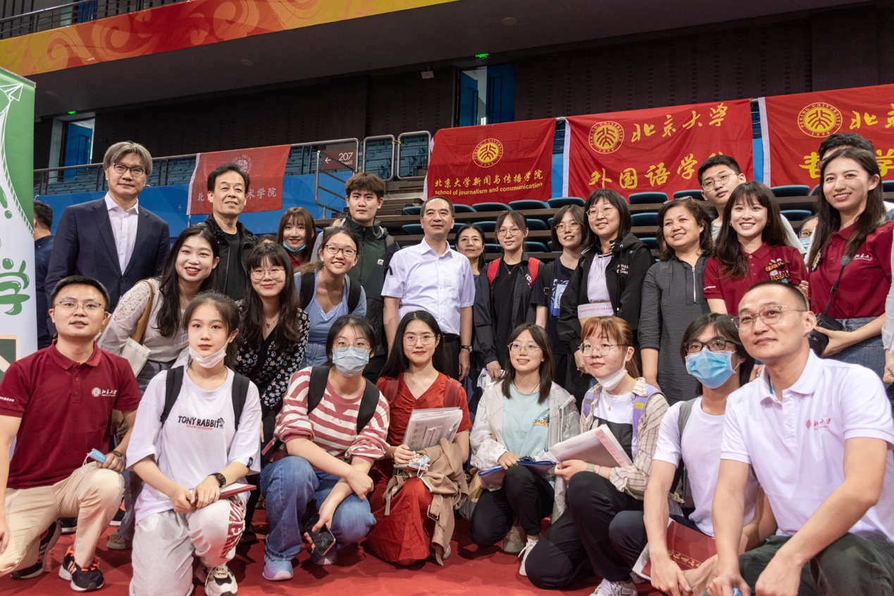 10点20分,校长龚旗煌,党委常委、副校长王博,党委副书记、副校长宁琦等校领导一行来到外国语学院迎新接待站关心新生报到情况,亲切询问新生基本情况,鼓励新生尽快适应大学生活,努力学习,并与现场师生合影留念。