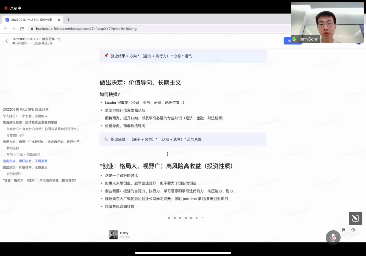 随后,2021届本科毕业生宋一鹏和2022届硕士毕业生邓晨予分别从企业就业和创业、公务员就业两方面与大家分享自己求职的经验与心路历程。