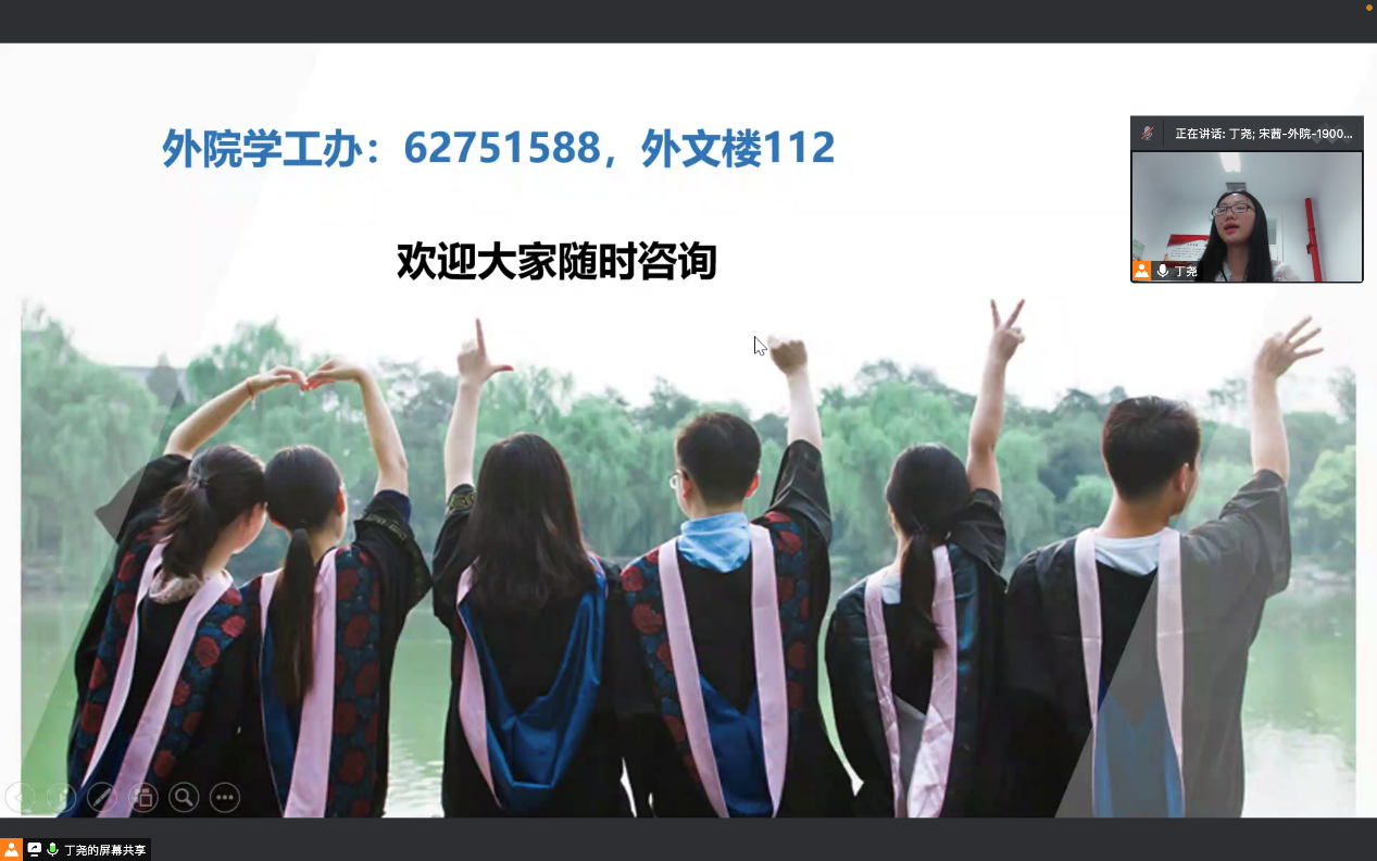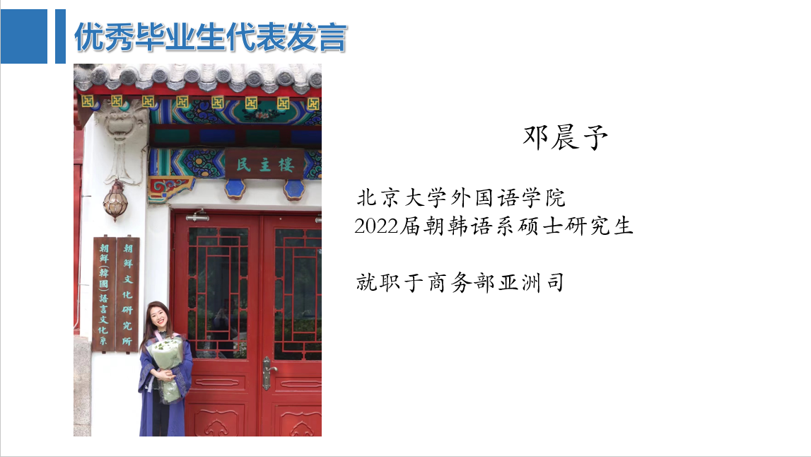 9月16日下午,开云官方在线入口2023届毕业生大会于线上举行。外国语学院党委副书记王恒,北京大学职业咨询师、信息科学技术学院团委书记、外国语学院19级开云官方在线入口第二班主任吕媛,以及外国语学院学生工作办公室各位辅导员出席大会;此外,2021届本科毕业生宋一鹏、2022届硕士毕业生邓晨予作为外国语学院的优秀毕业生代表也出席了本次大会,向毕业年级学生分享就业经验。学院2023届本、硕、博应届毕业生参加大会。
