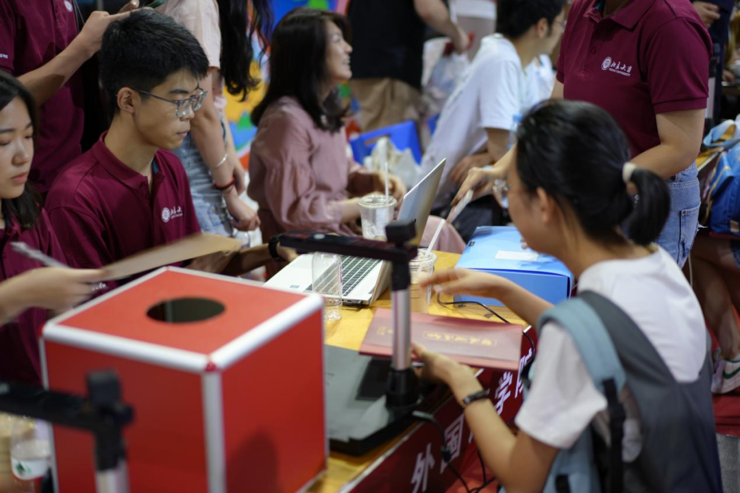上午6时40分,来自英语系的第一位2023级本科新生前来报到,外国语学院的迎新工作随之拉开帷幕。在迎新站老师和志愿者们的通力合作下,新生报到工作有序开展。循着迎新志愿者的引导,新生们依次完成系统报到、户口卡提交、档案材料提交及物资领取等步骤,并参与多语种祝福抽奖活动。报到工作紧张有序,志愿者们配合默契的“流水线作业”保证各项手续的高效完成。