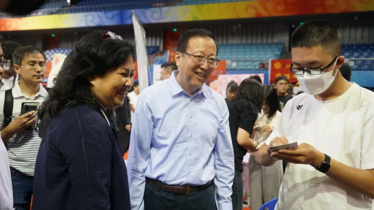 10点20分,校长龚旗煌,党委常委、副校长王博,党委副书记、副校长宁琦,党委副书记、纪委书记顾涛等校领导一行来到外国语学院迎新接待站关心新生报到情况,亲切询问新生基本情况,鼓励新生尽快适应大学生活,努力学习,并与现场师生合影留念。