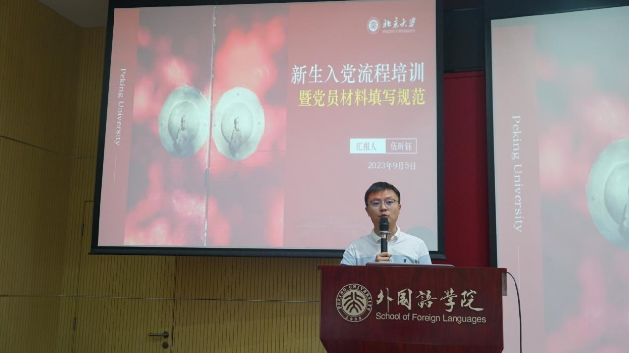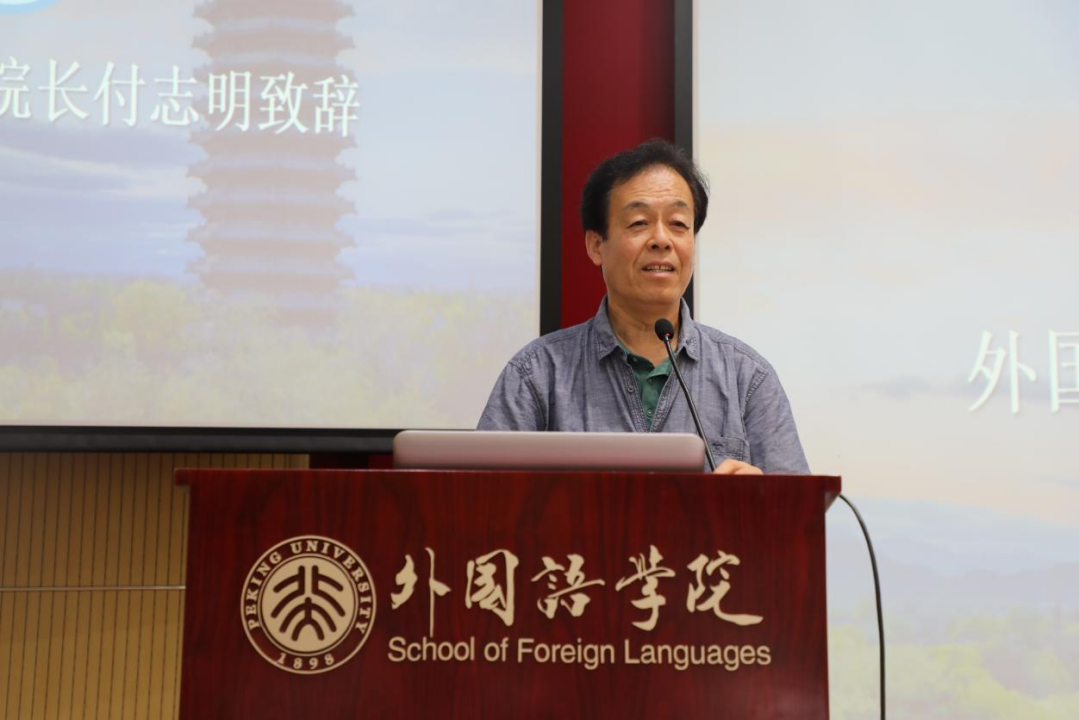 学院副院长付志明老师为新生见面会致辞。他首先对全体新生表示祝贺,欢迎大家来到北京大学,成为一名外院人,正式开始大学生活,他对新生们提出了几点期望。首先同学们要做好自己的大学生涯规划,平衡学习与生活,找到属于自己的未来发展方向。其次,要认真遵守校规校纪,规范自己的言行,牢记北大人的责任担当。再次,作为外国语学院的学生,应认真学习专业知识,苦练语言本领,讲好外语,向世界传递中国声音。最后,他表达了对新生同学们燕园生活的美好祝愿。