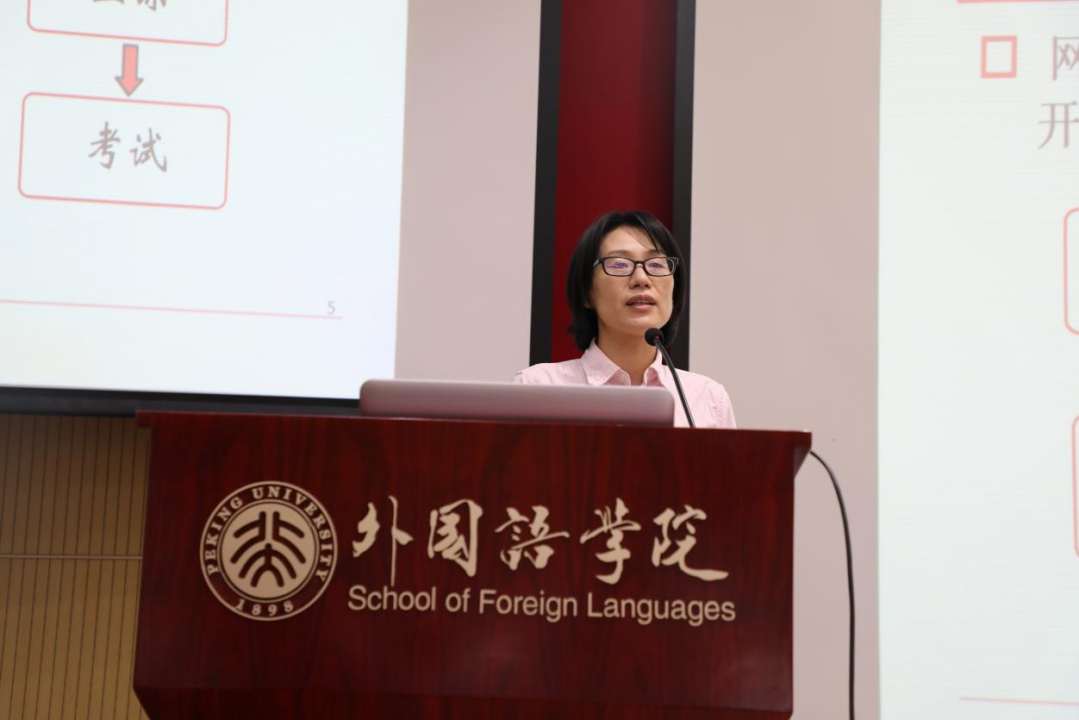王丹首先为新生们送上寄语,她对新生们能够脱颖而出、圆梦燕园表示了衷心的祝贺和热烈的欢迎。随后王丹从学科建设、课程设置、师资力量等方面介绍了学院基本情况,并对新生的学习生活提出了几点建议。她希望新生要心怀家国、立学为本,让青春在奋斗中绽放光彩。她还叮嘱新生要和导师与同学建立良好的合作关系,收获终生的良师益友。此外,王丹向新生说明了研究生阶段所面临的变化,提出同学们应当培养学术思维,利用好学术资源,积极参加学术交流。最后,她再次表达了对大家未来生活的美好祝愿,希望同学们在外院勤勉奋进,不负韶华。