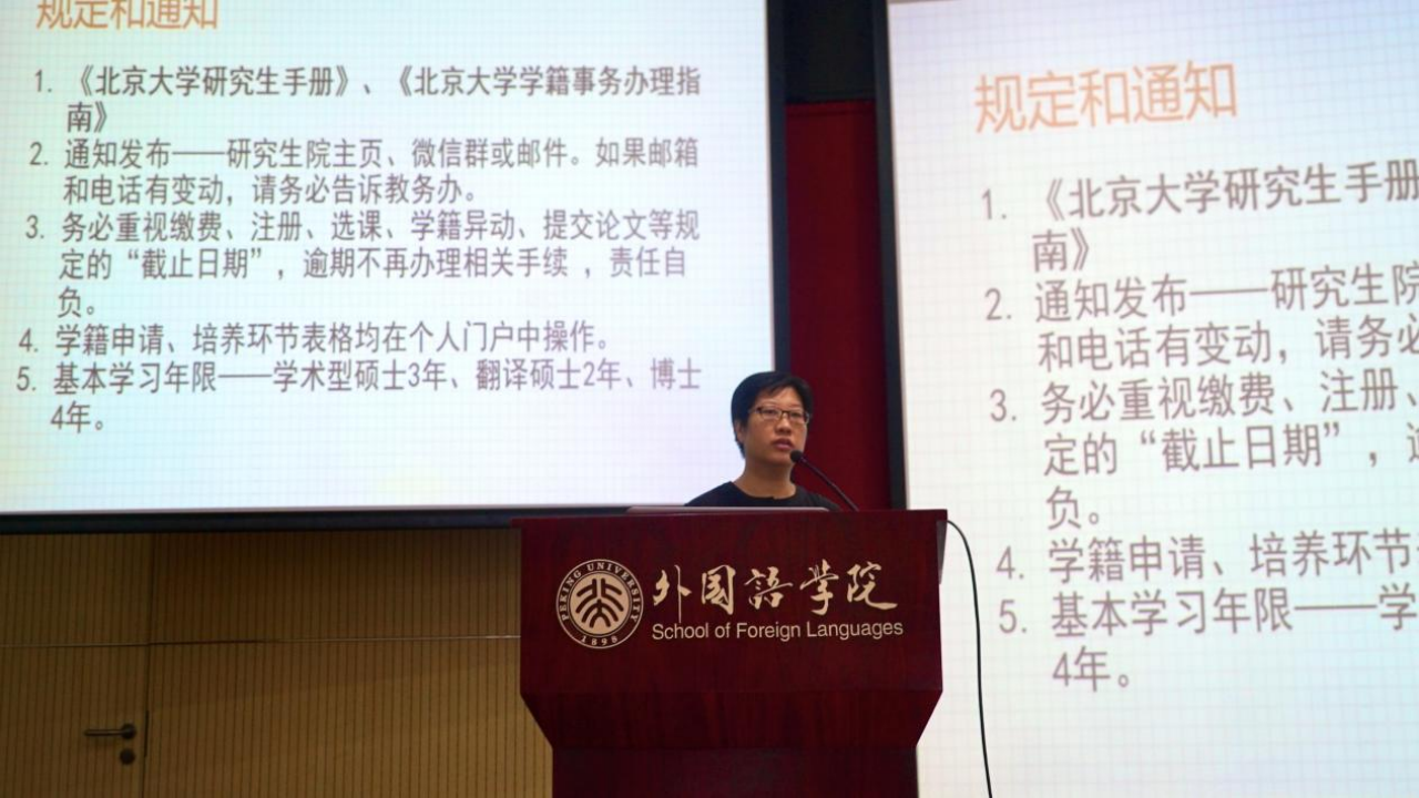 刘冬梅为同学们讲解了研究生培养学籍学位注意事项,从培养计划和个人规划等方面为大家做了细致的讲解,提醒大家充分掌握选课等方面的要求,更好地把握学习生活的节奏。