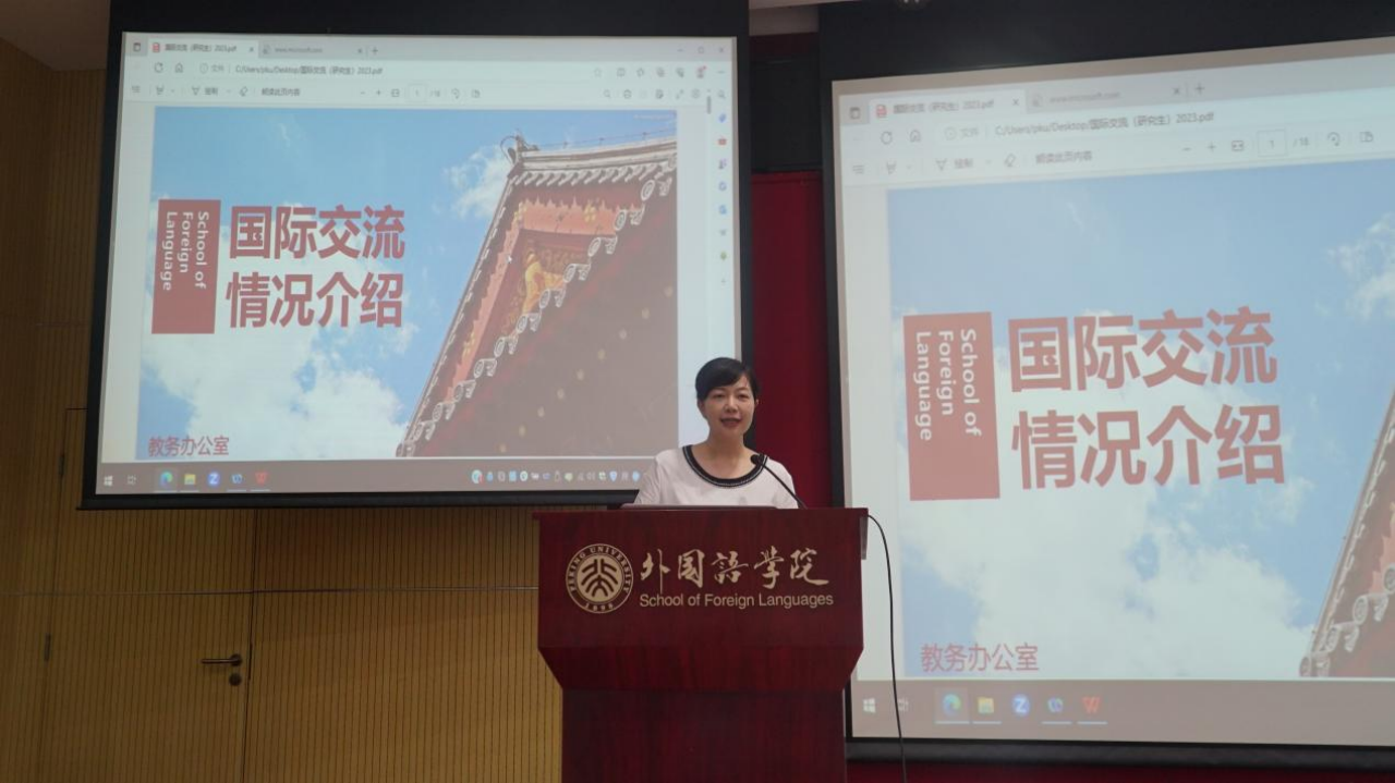 9月5日上午,外国语学院2023级研究生新生见面会在外院新楼501举行。学院副院长王丹,党委副书记王恒,燕园派出所指导员曹爱利,业务办公室、教务办公室主任张琳娜,教务办公室副主任叶恩红,教务员刘冬梅、李卉,团委书记伍昕钰,与全体2023级研究生新生共同参加活动。活动由2023级硕士生辅导员杜姝格主持。