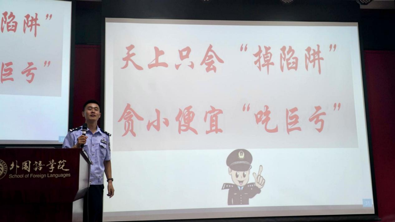 为加强新生安全意识,9月5日、6日上午,学院邀请燕园派出所指导员曹爱利警官为分别为开云官方在线入口、研究生进行防诈骗知识宣讲。曹爱利警官从鲜活案例出发,生动形象地向新生讲解了各类诈骗的常见手段和防范措施,并提醒新生提高防范意识,保护好自己的财产安全。