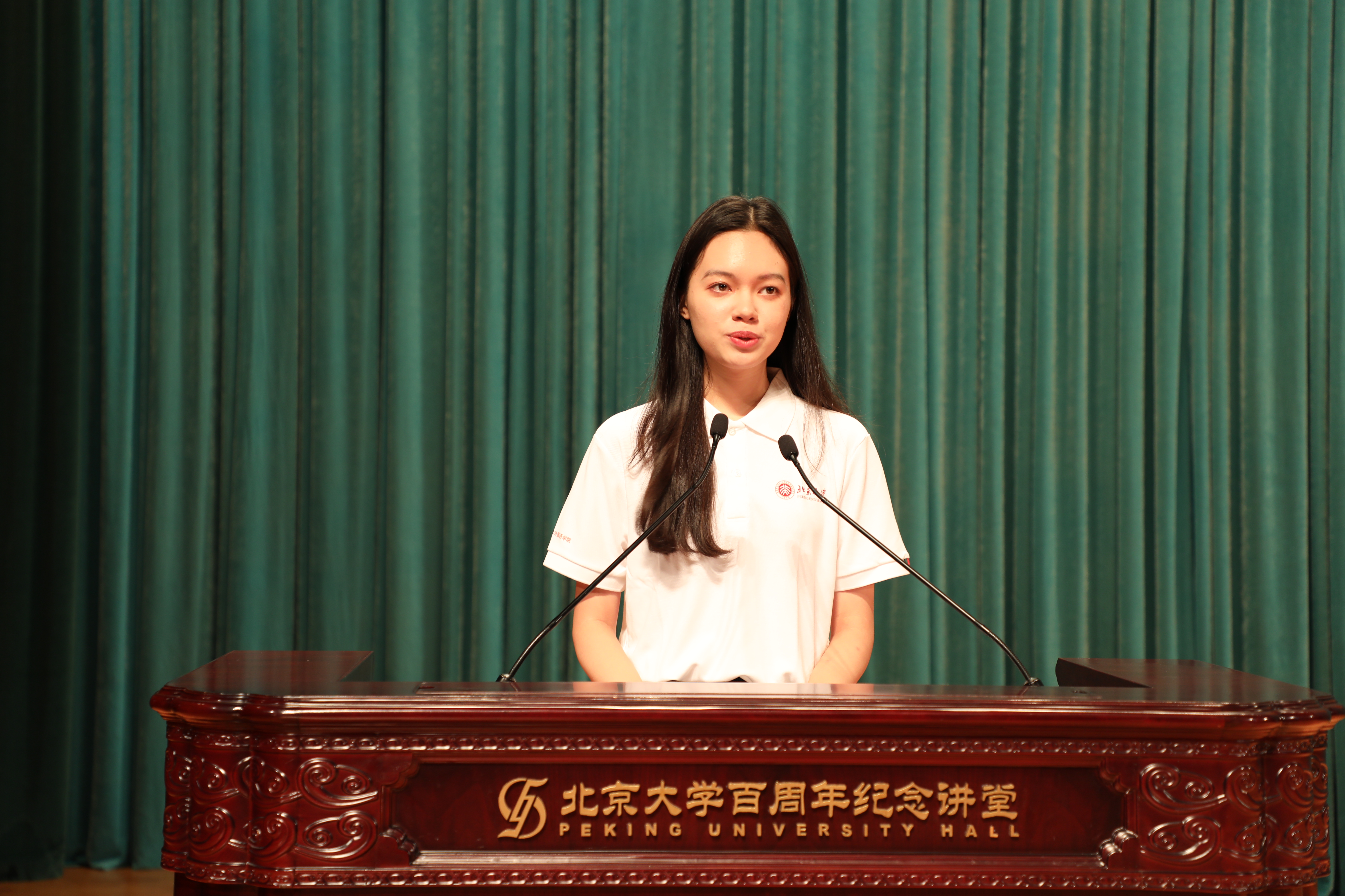 典礼的第一项议程是新生代表发言,初入燕园,新生们对外院新生活充满憧憬,踌躇满志。