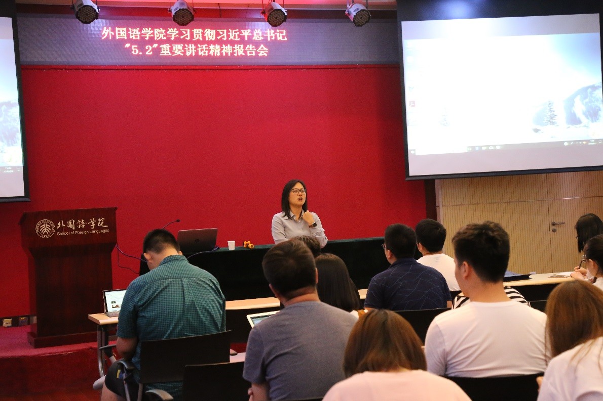 参会师生表示报告内容专业翔实,讲述风格深入浅出,通过学习愈发感受到总书记在北大师生座谈会上的讲话催人奋进、令人鼓舞。外国语学院先后组织党团支部及学生骨干,通过党课、团校、座谈、讲座、竞赛等多种途径学习总书记讲话精神,倡导青年学子在实践中增强专业本领,履行青年责任,真正做合格的社会主义建设者和接班人。