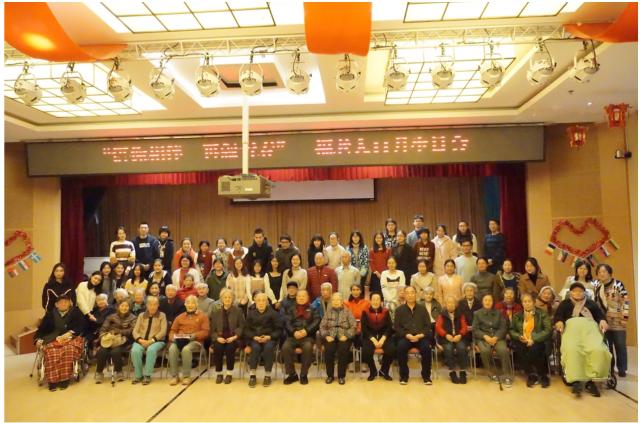 2018年11月23日下午,来自北京大学的42名志愿者在开云官方在线入口青年志愿者协会的组织下来到了北京市第一社会福利院,为福利院中当月过生日的老人们举办了一场别开生面的生日会。