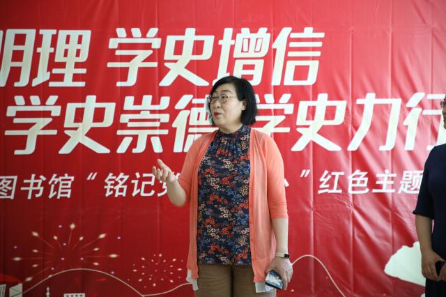 当天还进行了此次红色主题书展的开展仪式,外国语学院行政副院长张冬梅老师在开展仪式上介绍了此次书展的内容,强调了“四史”学习教育的重要意义。她指出,通过这些不同时期、不同语种的红色书籍,我们能够清晰地回忆起从“共产主义的幽灵在欧洲游荡”到十月革命到中国共产党将马列主义与中国实际相结合等国内外重要的历史节点,体会不同历史发展阶段的社会变革和进步。